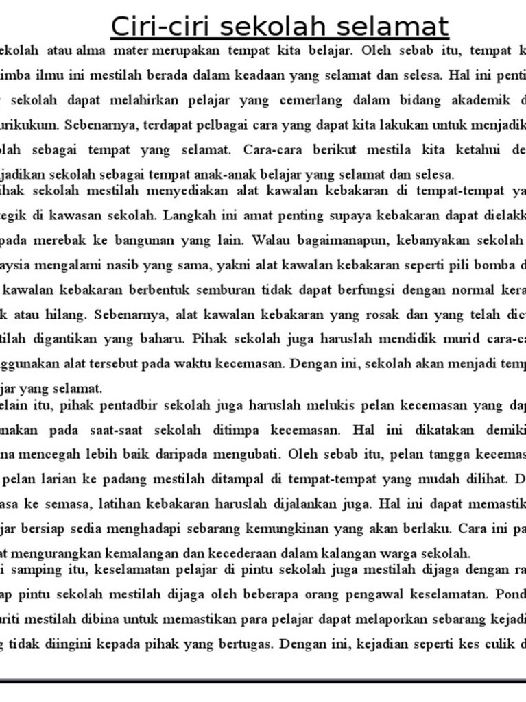Karangan A Ciri Sekolah Selamat Pdf